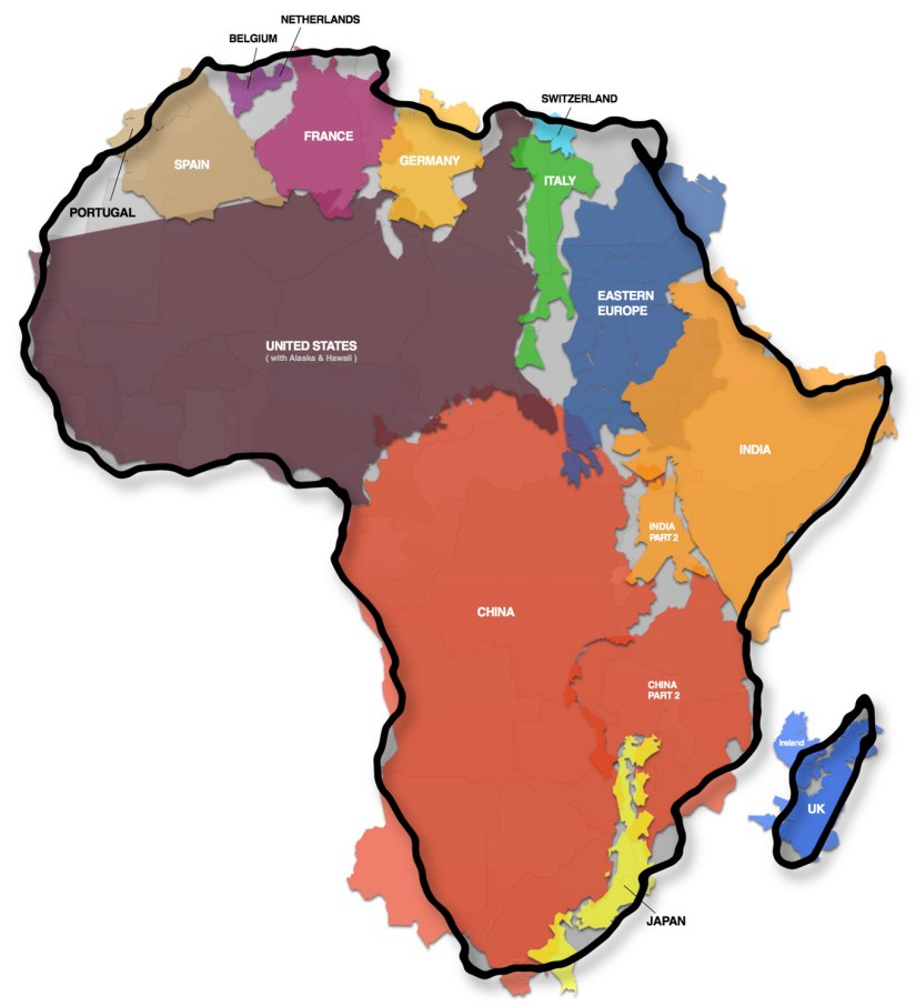 Mozambique was certainly an interesting introduction to the first of ten ports that we will visit on the African continent. To grasp just how enormous this continent is, please take a moment to let this graphic soak in: