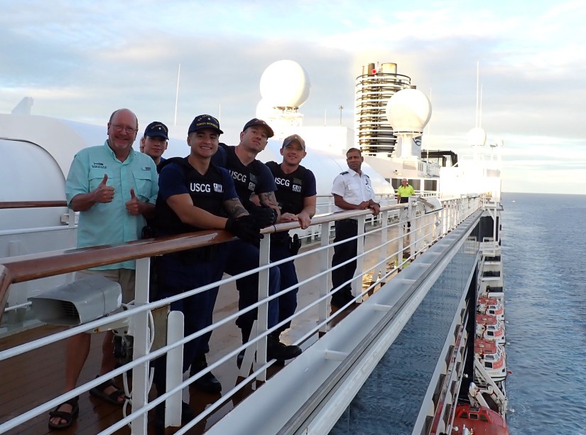 Guam is a U.S. Island Territory with a population of 174,000 people.  Of that, about 22,000 soldiers call this island home.   With visits from only 5 cruise ships a year, locals here were excited to welcome us.  Including a small group from the Coast Guard who came aboard to aid with the required face-to-passport Immigration Clearance.  They were quite friendly and marveled at the Zuiderdam’s itinerary.