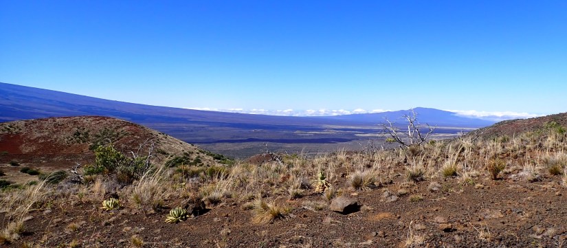 Our route today took us up Saddle Road, a stunning drive that winds us between two great volcanos: Mauna Loa (active) on our left and Mauna Kea (dormant) on our right.  Photos simply do not adequately capture the vast expanse in front of us.   The scene is both breathtaking and awe-inspiring!