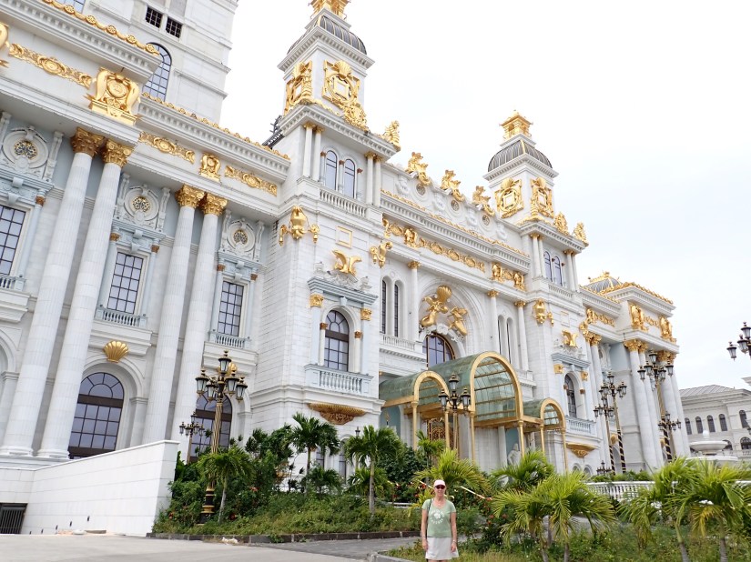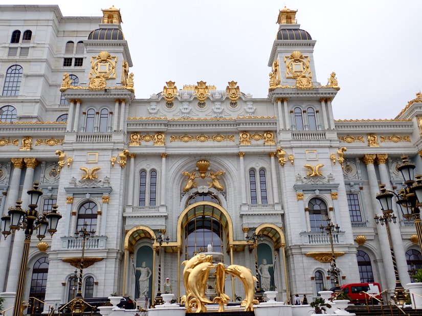 The most intriguing building is the incredibly opulent but defunct Imperial Palace International Casino building.  Mired in scandal, construction ceased in April 2020.  Sadly, salt air and typhoons have further aided in the corrosion of this once polished casino and hotel.
