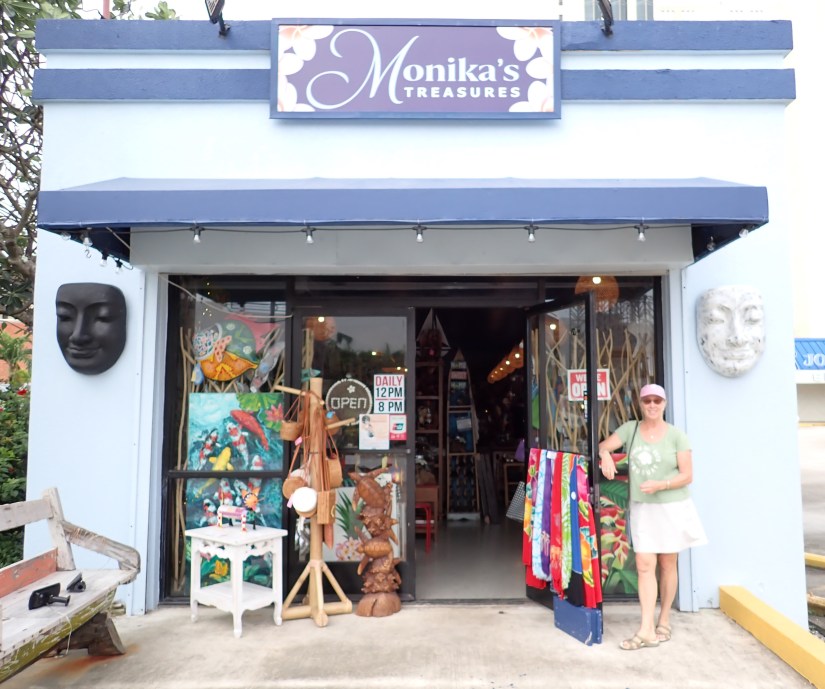 This village of 3,600 people was quiet and appears to be recovering and rebuilding from a devastating typhoon last year, as many businesses were closed and the resort hotels along the oceanfront were sparsely populated.   However, this boutique was open and interesting!