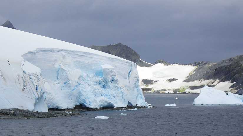 But the winds were just getting started as Volendam headed into the nighttime hours (which incidentally are daylight at this latitude). Crossing the 60 degrees south latitude, we officially enter Antarctic waters. Volendam cuts through the 12 to15-foot seas riddled with white caps whipped up from nearly 40 knot winds. Nevertheless, movement on the ship is quite tolerable, as her deep keel and stabilizers maintain a fairly steady and level ride. The evening and all through the next day, however, fog and rain kept us from viewing too much scenery other than wind-streaked waves.
