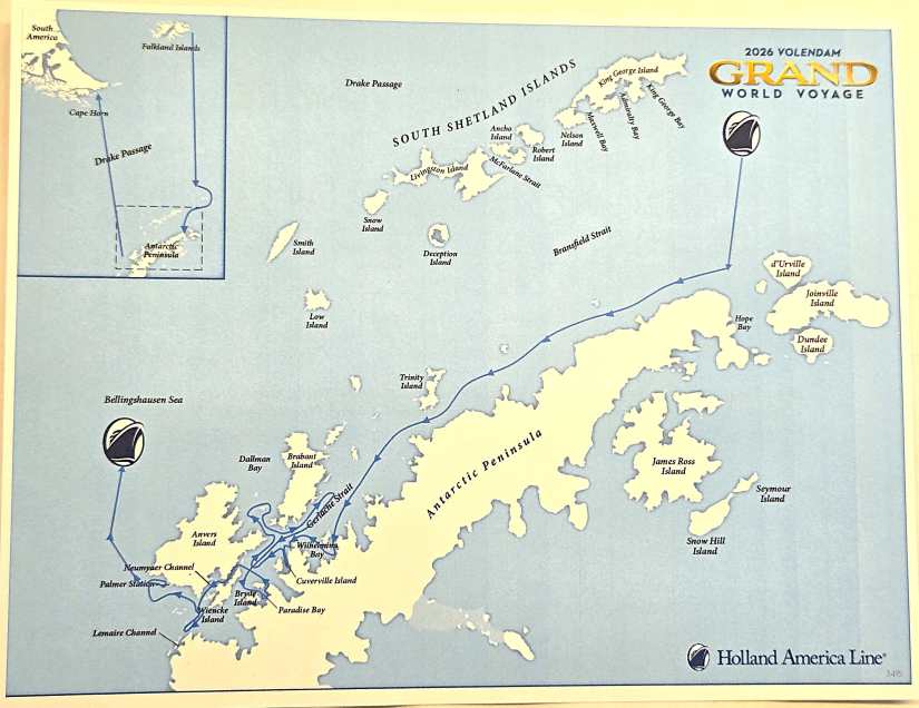 After 37 days on a southerly heading from Florida, Volendam has arrived at the bottom of the world and now begins a northerly course. We will cross the notorious Drake Passage, heading for Cape Horn and Patagonia. Stay tuned!