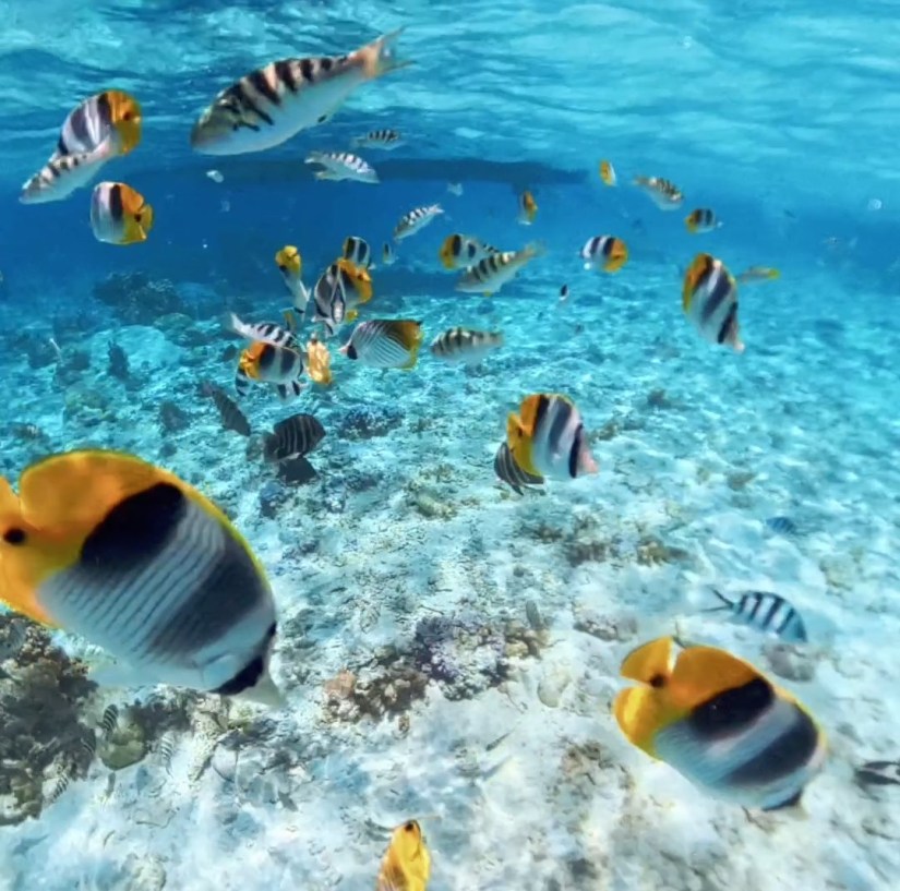 Four separate stops, each with its own personality: small reef sharks cruising lazily, graceful rays gliding past, vibrant coral gardens, and dreamy sandy “swimming pools” in waters so turquoise-teal they hardly seemed real.