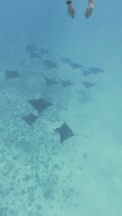 A shipmate friend arranged a snorkel excursion for twelve of us, and soon we were plunging into crystalline turquoise waters, swimming alongside sea turtles, blacktip reef sharks, and what felt like an entire armada of eagle rays gliding gracefully below us.