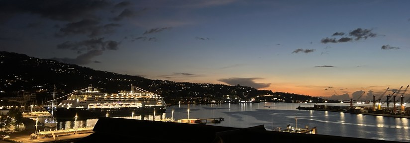 With our departure not scheduled until 3 a.m., we had the rare treat of experiencing Papeete by night. At sunset, we rendezvoused with a small group of friends at a rooftop hotel overlooking the harbor, watching the sky melt from gold to indigo as the harbor lights flickered to life.