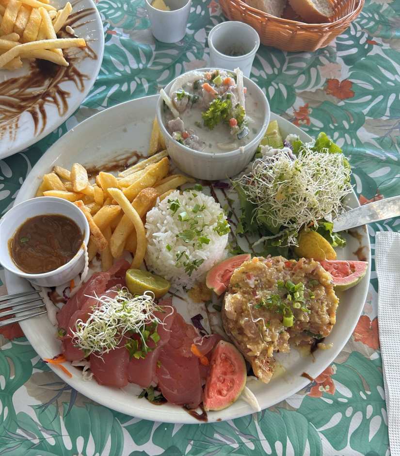 Lunch was at a casual beachside restaurant specializing in fresh tuna, accompanied by one of the most spectacular turquoise panoramas imaginable. It was almost too brilliant to be real.